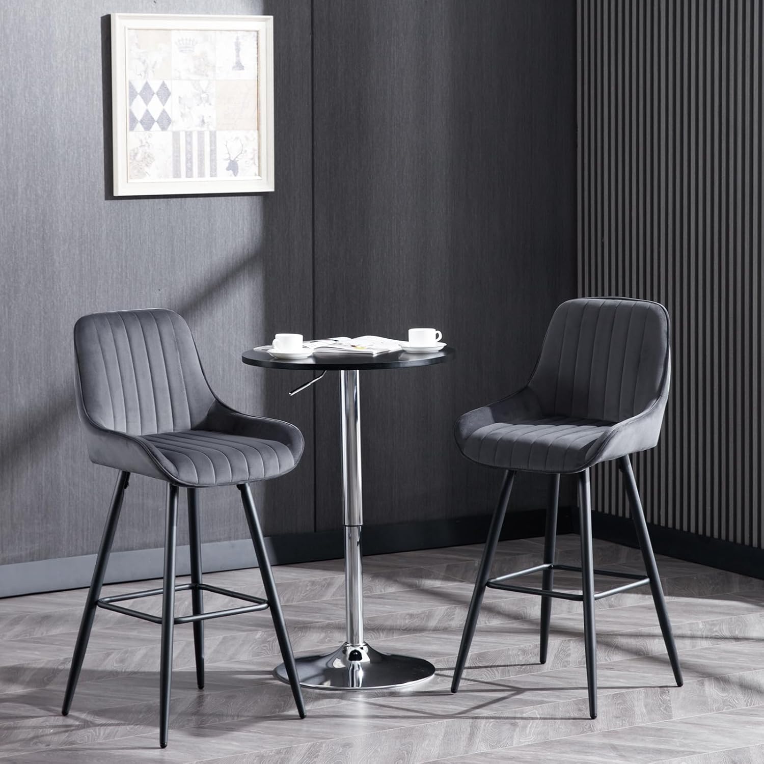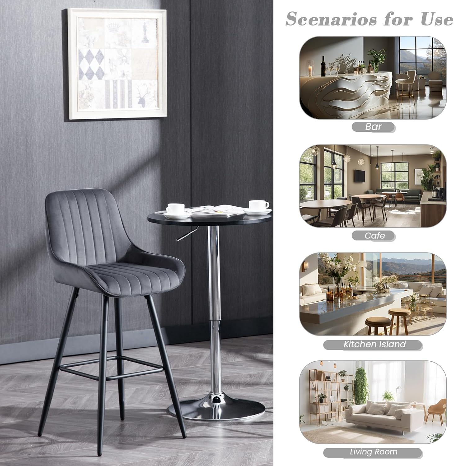 Integrated 360° Footrest: Each stool features a reinforced metal foot ring or bar, providing a comfortable resting point for the legs and increasing the overall stability of the frame.